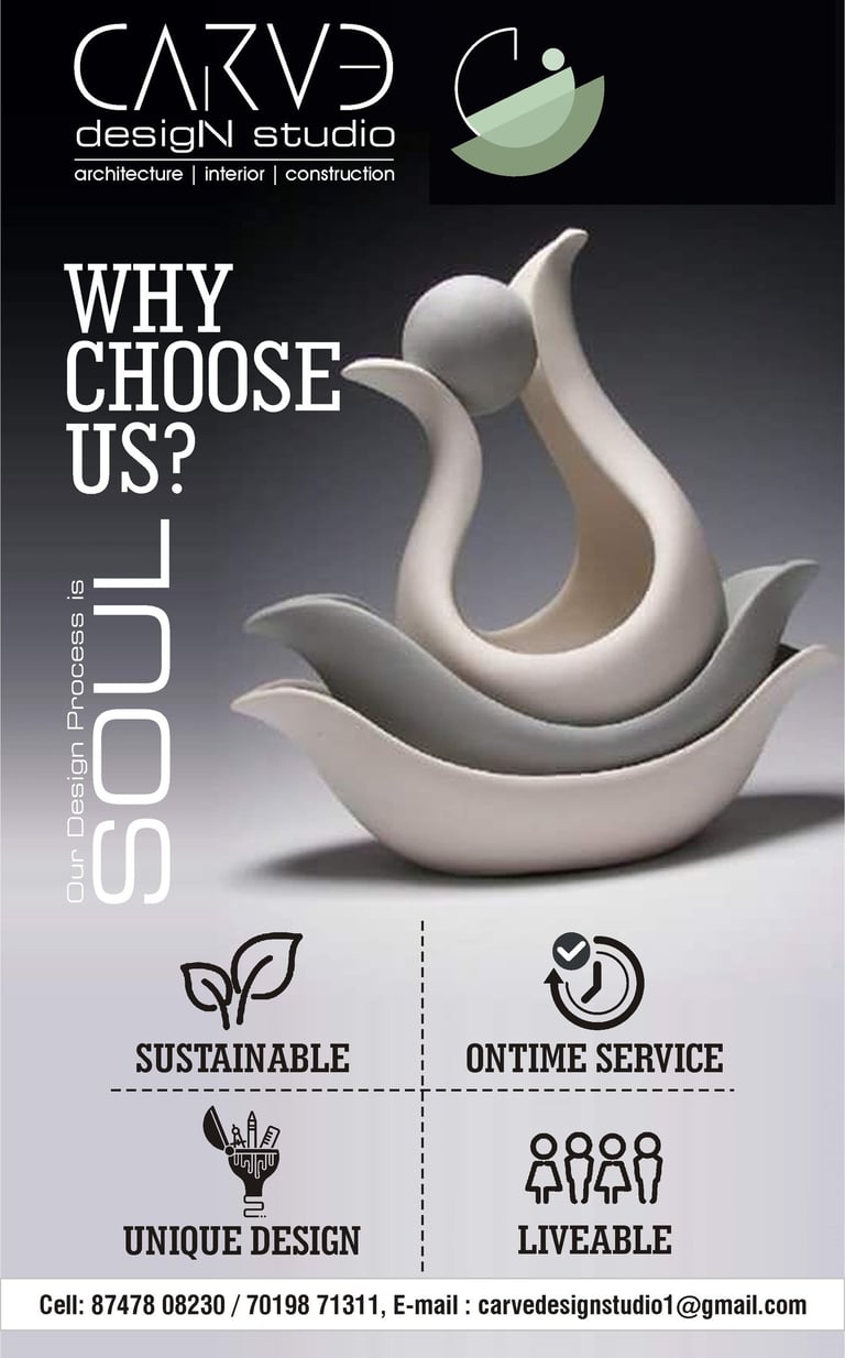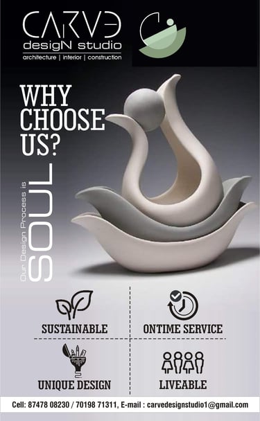 Why choose us? We prioritize sustainability, on-time service, unique design, and liveability in our design process. Sustainability is at the core of our work, ensuring that our designs are environmentally friendly and contribute positively to the planet. We understand the importance of delivering projects on time, and our commitment to on-time service sets us apart from the rest. Our team takes pride in creating unique designs that stand out and leave a lasting impression. We believe that every design should not only be aesthetically pleasing but also functional and liveable, providing comfort and enhancing the overall quality of life. With our focus on these four pillars - S.O.U.L, we guarantee a design experience that exceeds your expectations. Choose us for a sustainable, on-time, unique, and liveable design solution. We are dedicated to provide exceptional interior & architectural services, making us the Best Interior & Architectural designer in Hubli for your space.